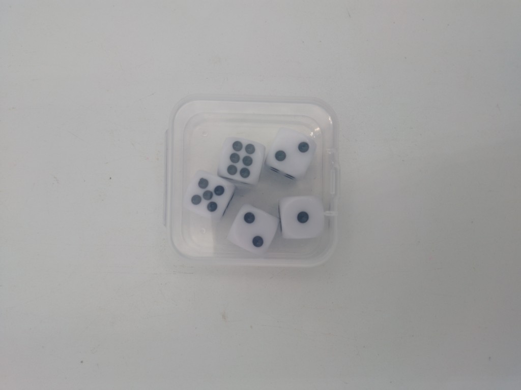 Set de 5 dados clásicos para juegos y actividades.